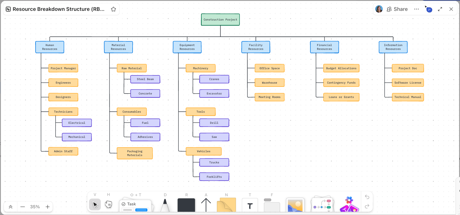 What’s more? You can share, edit, and collaborate with various stakeholders right within the platform. You can create your own customized resource breakdown structure template for future use too.