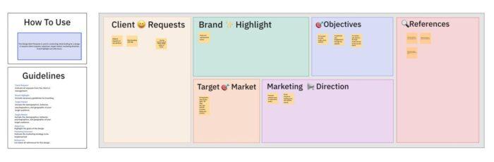 Unlike static docs, this whiteboard format helps your internal team and stakeholders see how each part of the creative project connects.