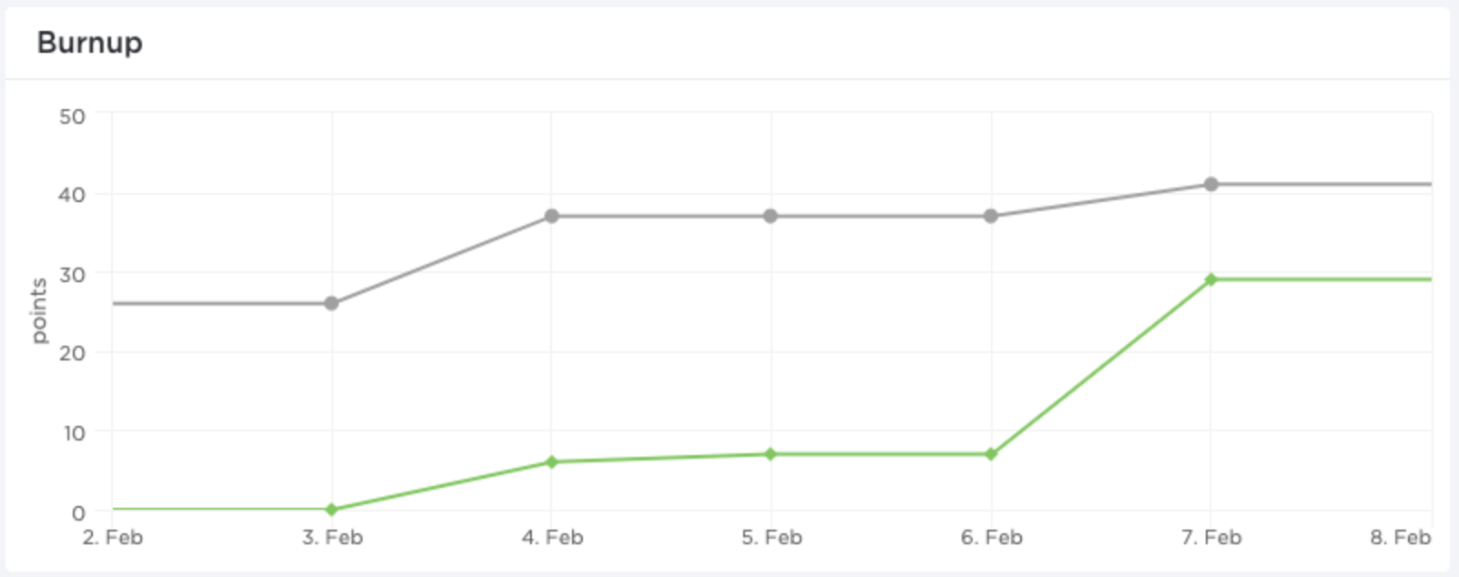 Here, the green line represents the work the Scrum team has completed so far, and the grey line represents work that’s left to be done.