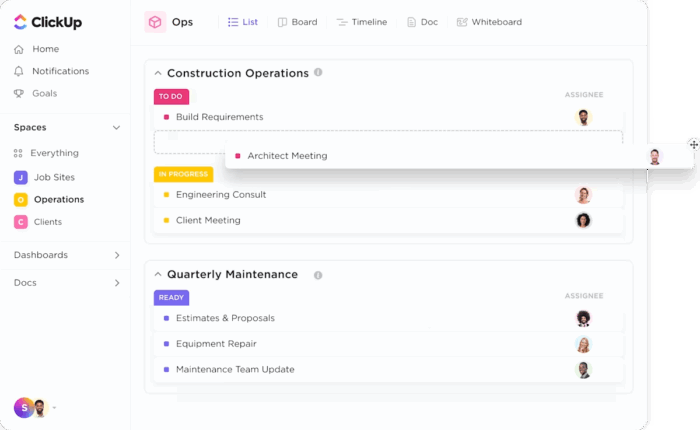 Here’s a breakdown of how each ClickUp feature handles a specific piece of the construction puzzle: