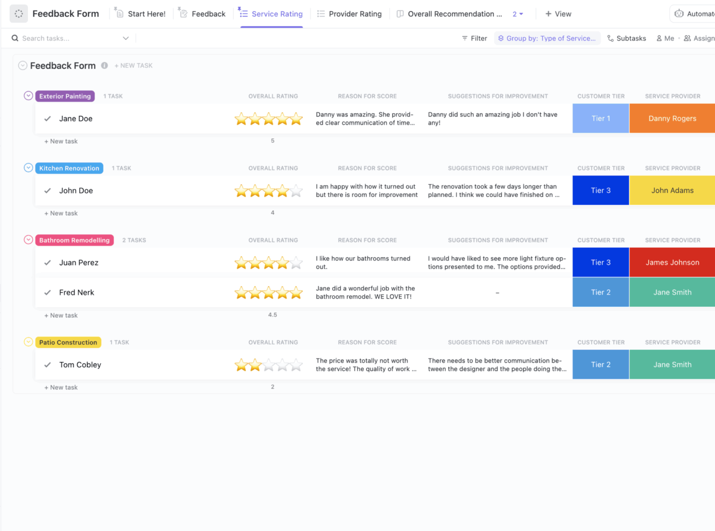 ClickUp Automations eliminate manual handoffs between feedback collection and action. Configure rules to automatically notify team members when negative feedback arrives, create tasks for follow-up when specific issues are mentioned, or update project statuses based on feedback milestones.