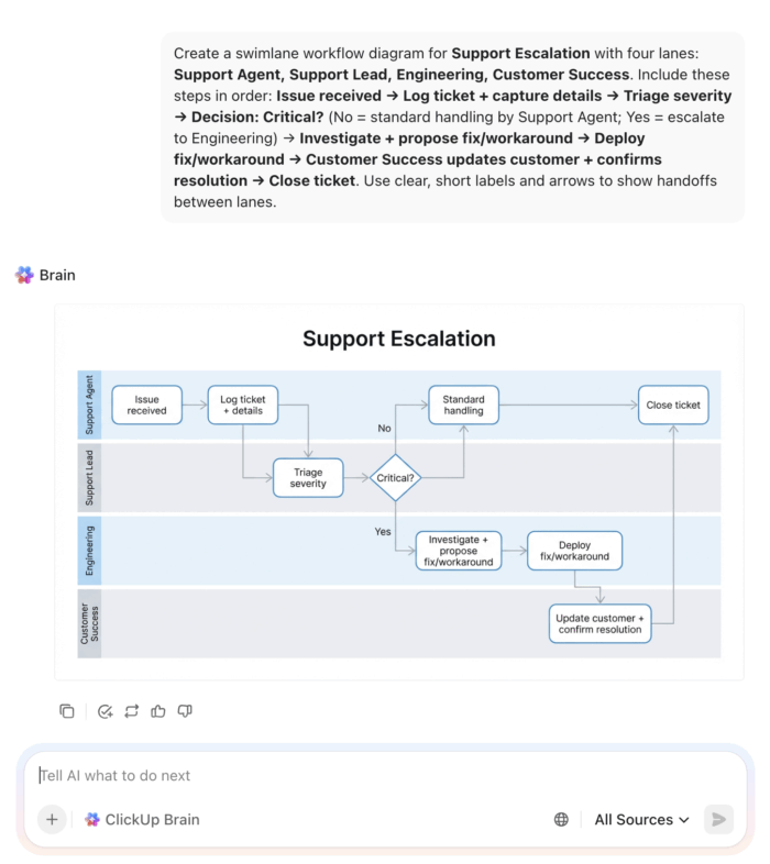 ClickUp helps you keep that momentum in one place. Map the workflow, document the process, and track the work as it moves, all in the same system. With AI layered into your workspace, you can spot patterns, summarize changes, and turn insights into the next action without bouncing across tools.