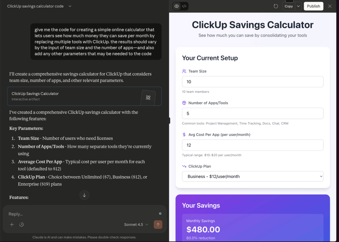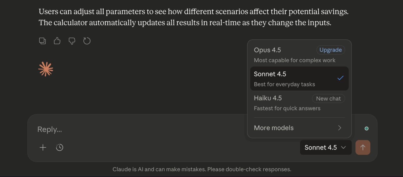 Sonnet 4.5’s your team’s reliable all-rounder. It offers the best balance of intelligence and speed for most day-to-day professional work. It’s great for coding, has solid reasoning skills, and responds much faster than Opus without the premium price tag. All of this makes it the one model your team can rely on all day.