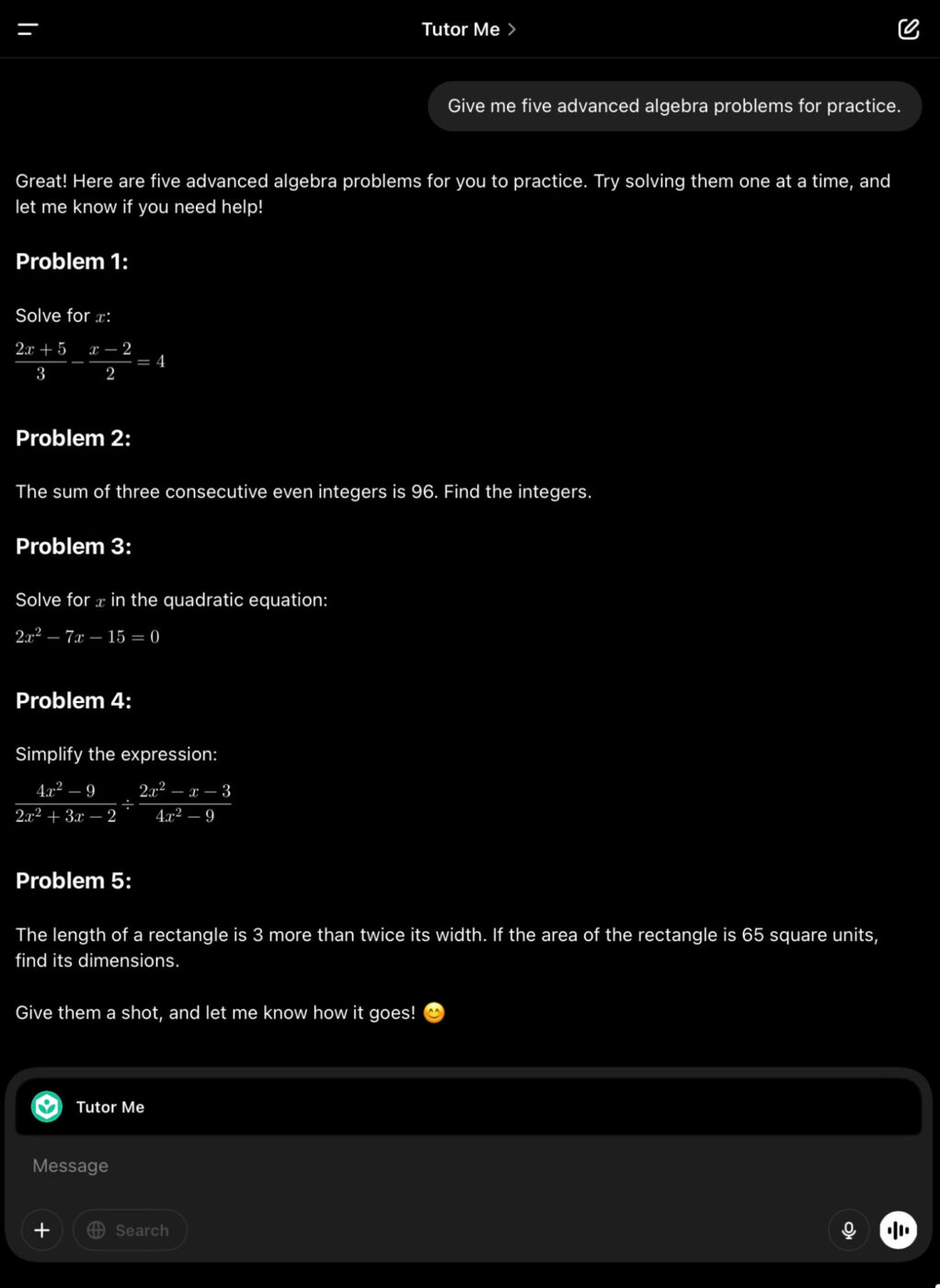 Tutor Me Mode is a feature within Khanmigo that mimics one-on-one tutoring by providing tailored guidance, asking probing questions, and fostering critical thinking in math and humanities. It employs a Socratic method, guiding learners through step-by-step problem-solving without directly providing answers. This approach encourages deeper understanding and independent learning.