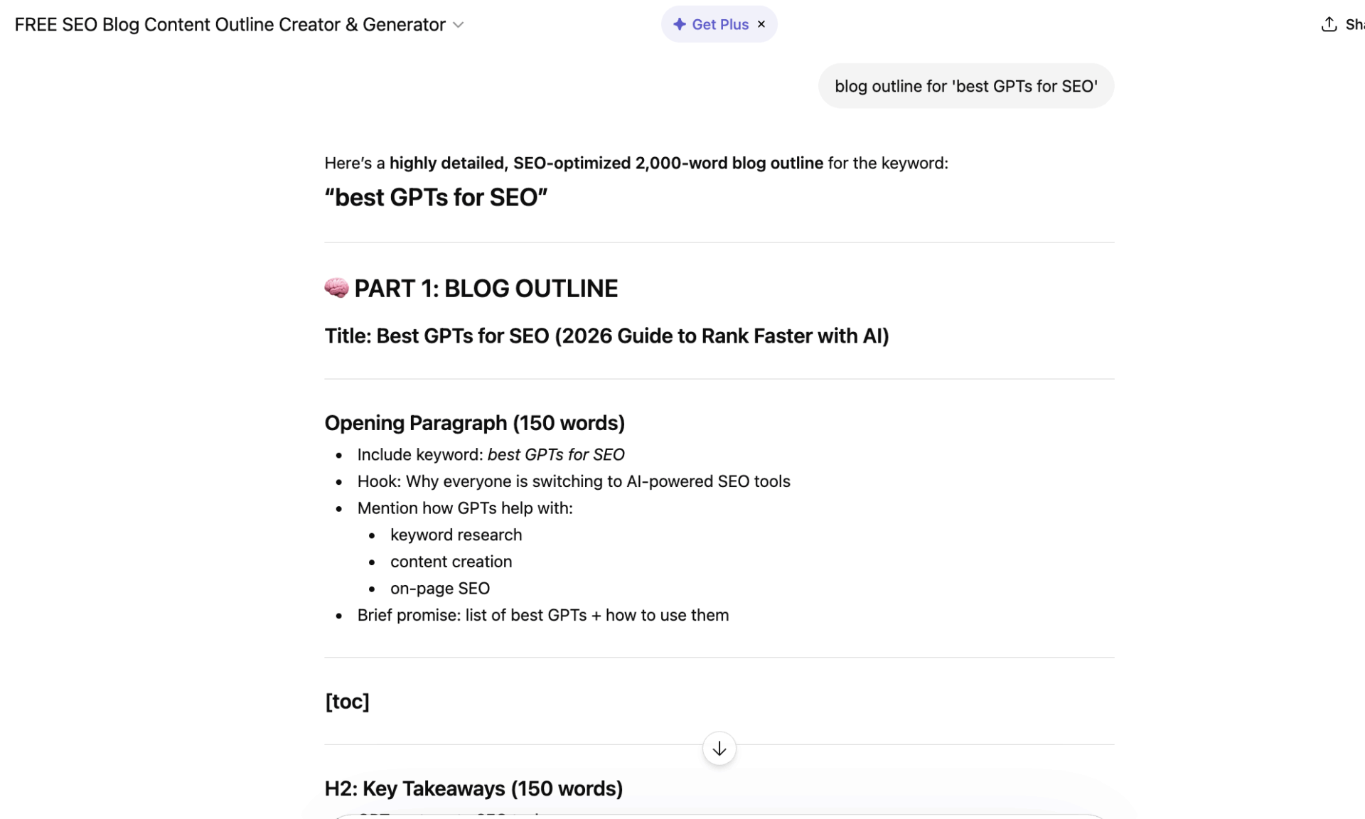 This GPT helps you go from keyword to outline in minutes. No more blank page anxiety.