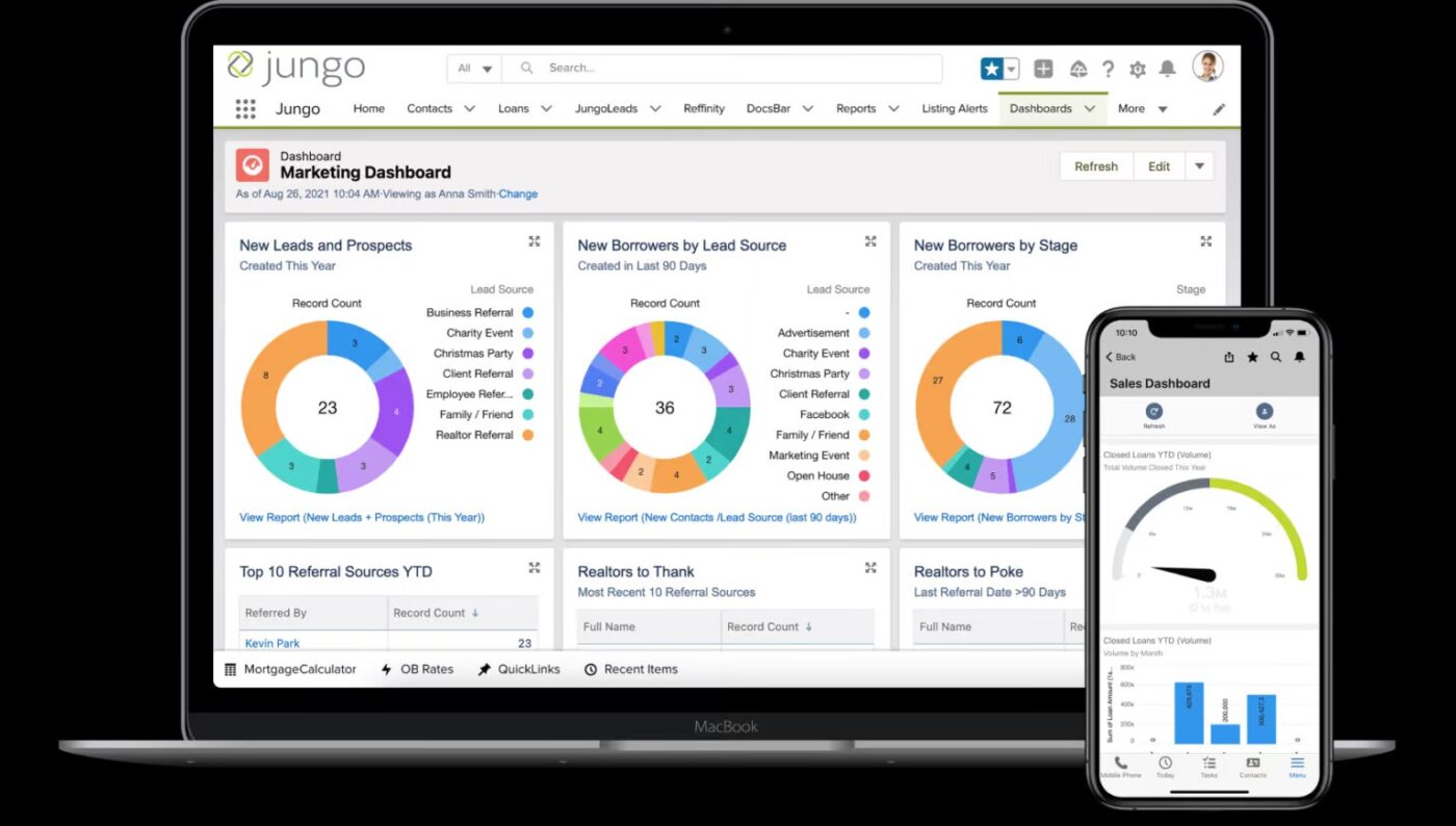 | Jungo | Built on Salesforce, LOS integration (Encompass, Calyx Point), marketing templates, automated post-close programs | Enterprise teams using Salesforce who need built-in mortgage marketing and client retention | No free plan; Paid plans start at $119/user/month; Custom pricing for enterprises |