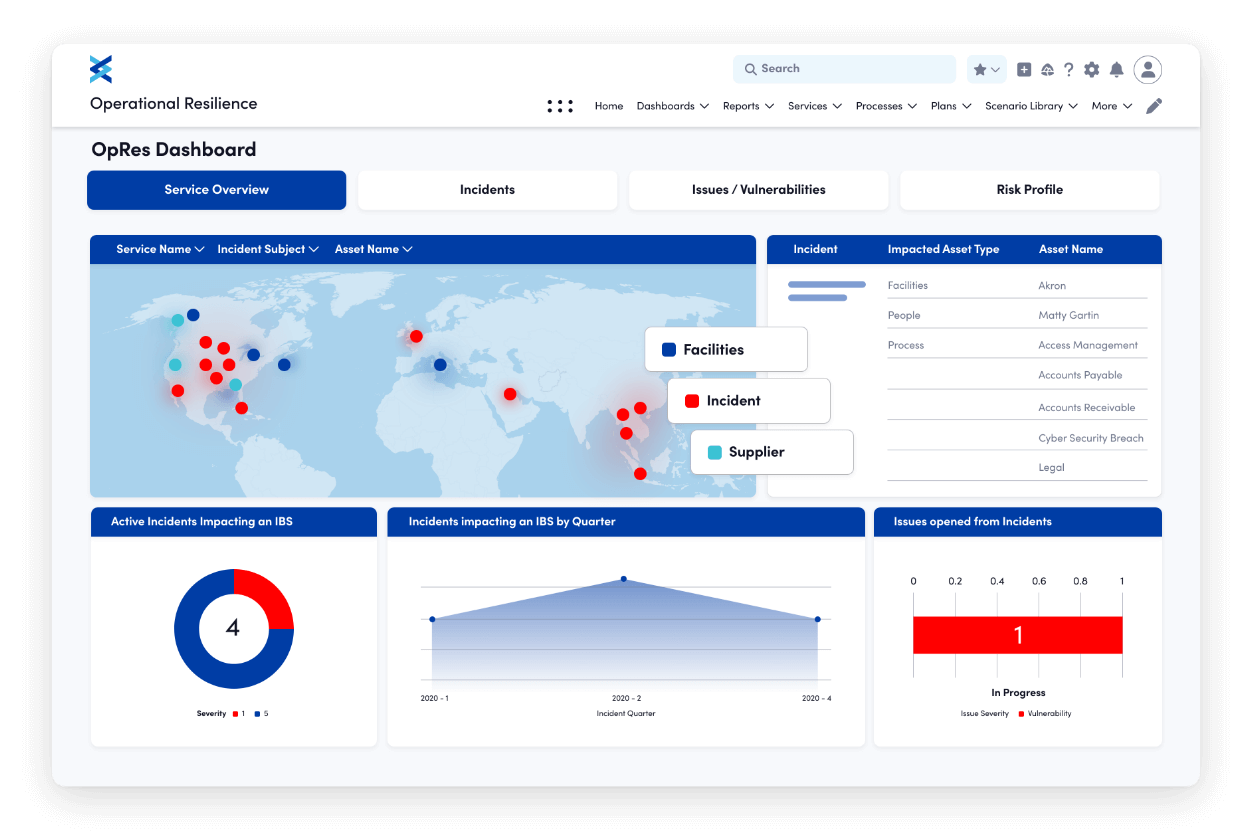 Archer connects business continuity with areas like operational risk, third-party risk, and regulatory compliance. This gives teams a single view of how disruptions affect the wider risk landscape, instead of managing continuity in isolation.