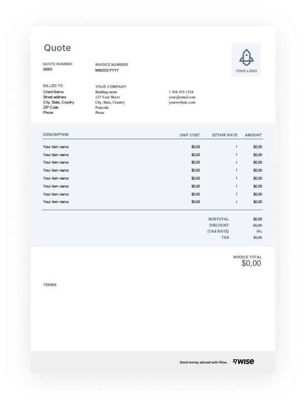 Because the layout is clean, customers immediately understand the breakdown. It works in Google Docs, Excel, and PDF.