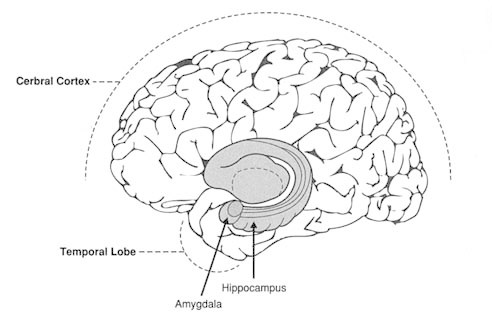 She writes that memory is cataloged in the hippocampus. When the memory is emotionally powerful, the amygdala flags it. Some components are distributed to the cerebral cortex. To recall, we activate the frontal lobes, which then bring information from various parts of the brain.