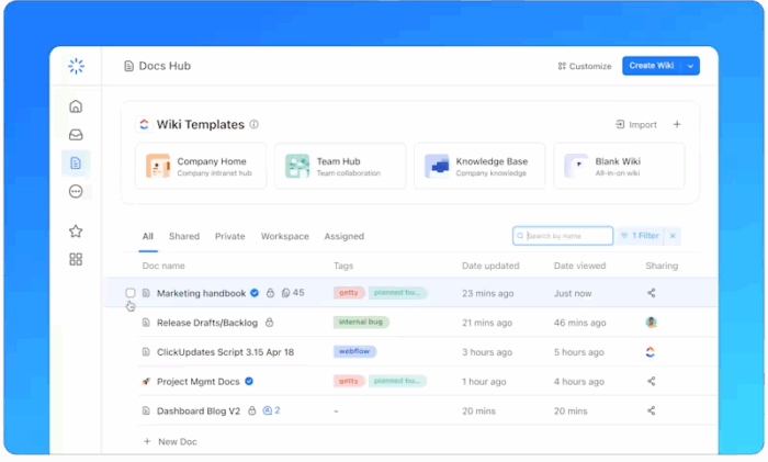 ClickUp Docs helps you create documentation that stays connected to execution and collaboration.