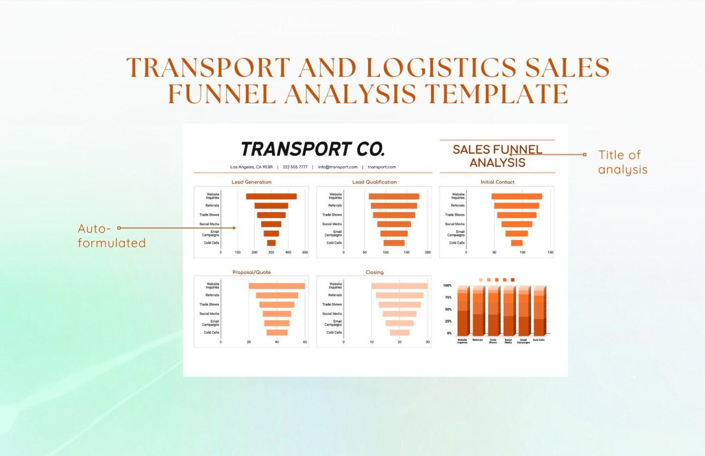 | Transport and Logistics Sales Funnel Analysis Template by Template.net | Download this template | Transport and logistics teams that want simple spreadsheet-based funnel tracking without advanced workflow features. | Pre-built conversion formulas; simple customization; export-friendly structure for basic stage analysis |