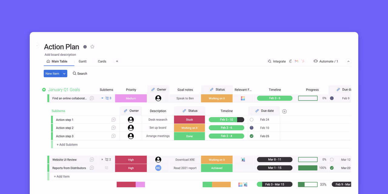 While not solely a goal management tool, Monday.com’s flexibility enables teams to create boards specifically for tracking goals, defining milestones, and monitoring progress. Its automation features can streamline goal-related workflows, and integrations can connect it with other tools for a more comprehensive overview.