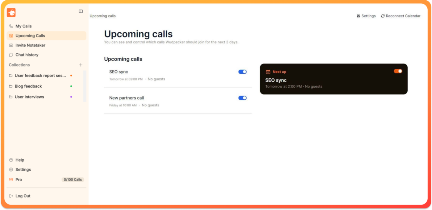 One standout feature is its AI-powered query system that allows you to ask questions mid-meeting and get real-time, context-aware answers. Plus, Wudpecker’s cross-platform recording, which works for both virtual and in-person discussions without relying on bots.