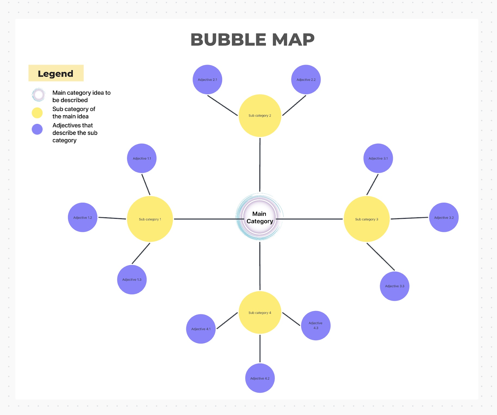 A bubble map is a visual tool that helps connect ideas, highlight patterns, and structure complex information intuitively. ClickUp’s Bubble Map Template is a free graphic organizer template that is designed to break down complex concepts.