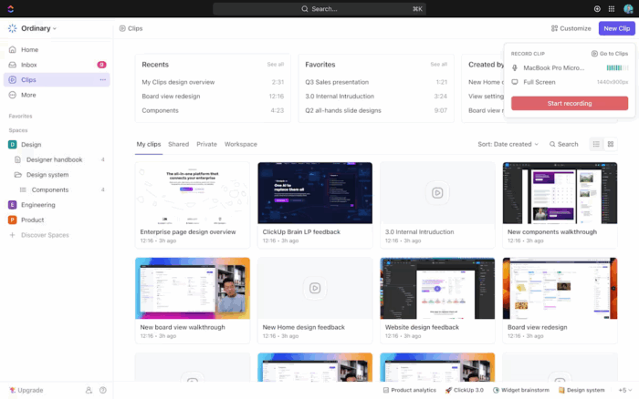 Use ClickUp Clips for efficient recording and sharing