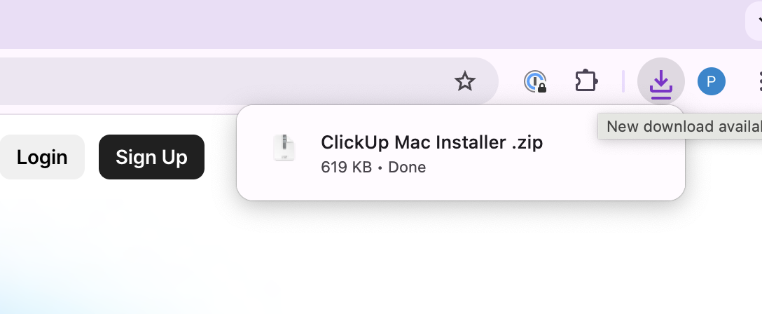 After starting the download, you’ll see a progress bar indicating that ClickUp is being downloaded to your computer. Once the download is complete, you can proceed with the installation.