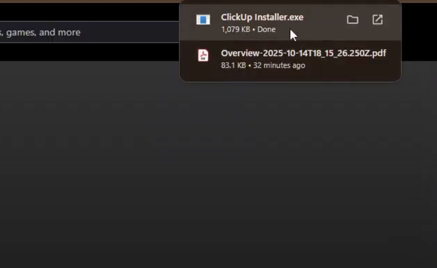 The app will download and install automatically. Once finished, you can launch ClickUp from your Start Menu.