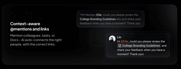 For example, you can say, “Create a task to draft the Q3 performance report, assign it to Sarah, and set the due date for next Friday.” That task appears in your workflow, ready to be worked on—no copy-pasting required. This closes the gap between capturing an idea and acting on it.