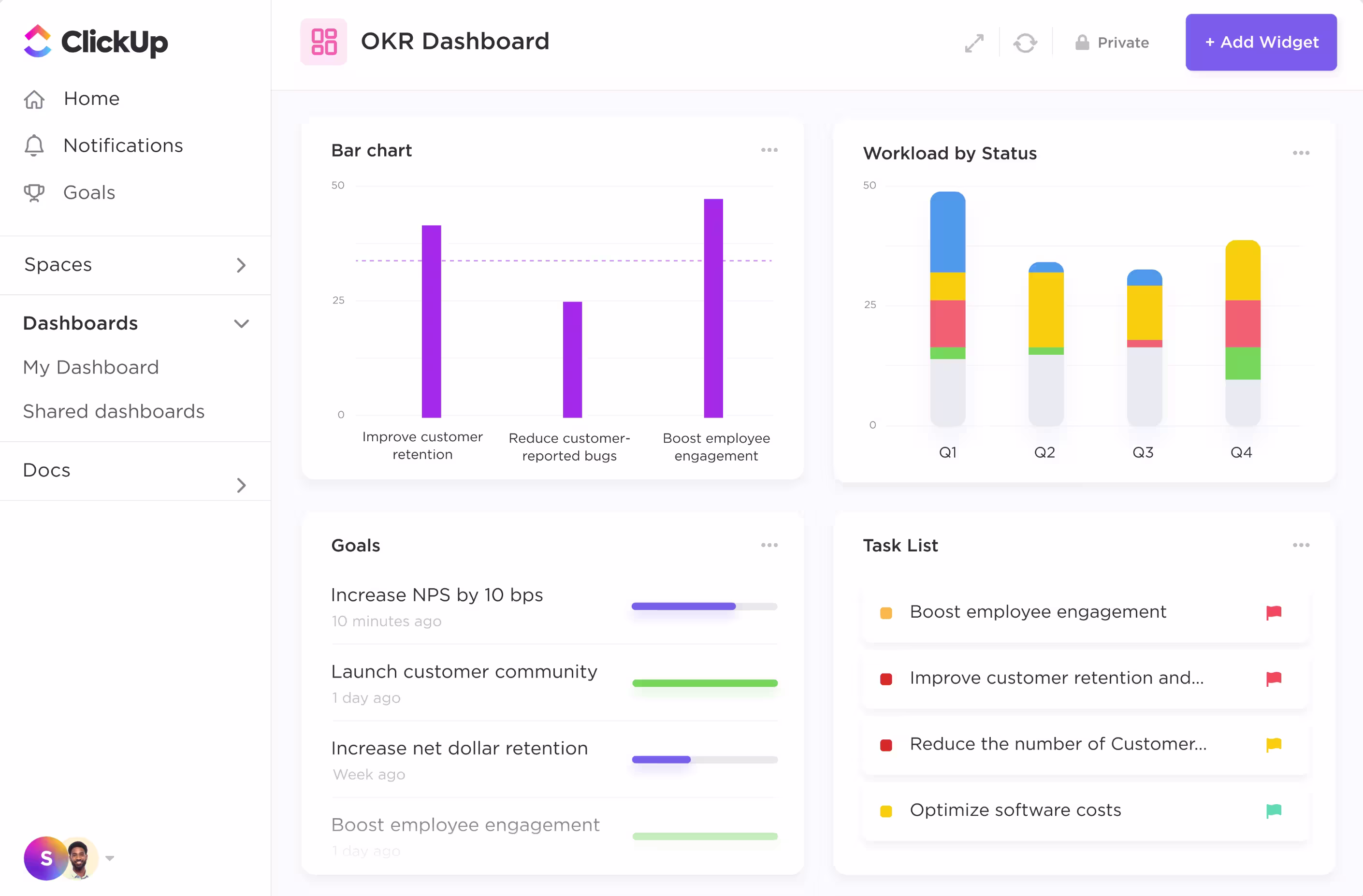 And it doesn’t stop at execution. With ClickUp Dashboards, you can: