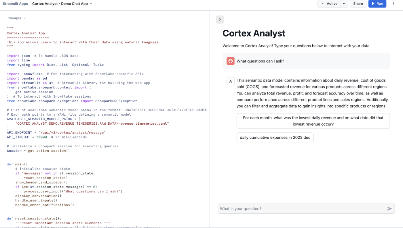 Snowflake Cortex Analyst is a fully managed service that allows you to build conversational applications over your analytical data.