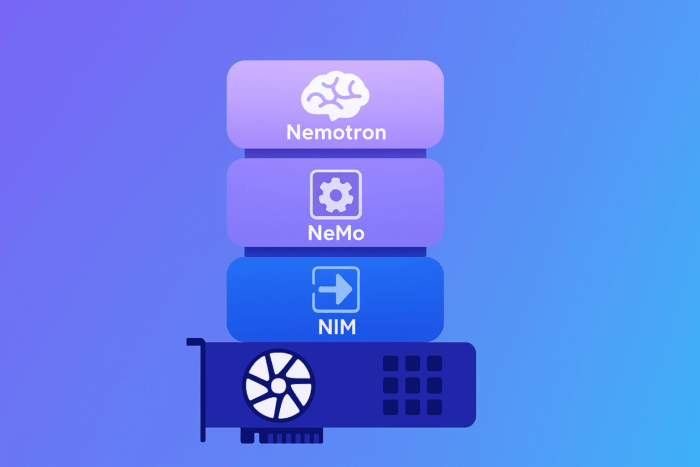 • The stack includes Nemotron, NeMo, and NIM for full customization.