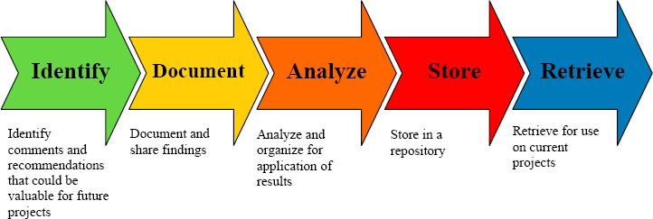 In project management, the process of capturing lessons learned is crucial for continuous improvement and future project success. The process typically involves five key steps: identification, documentation, analysis, storage, and retrieval.
