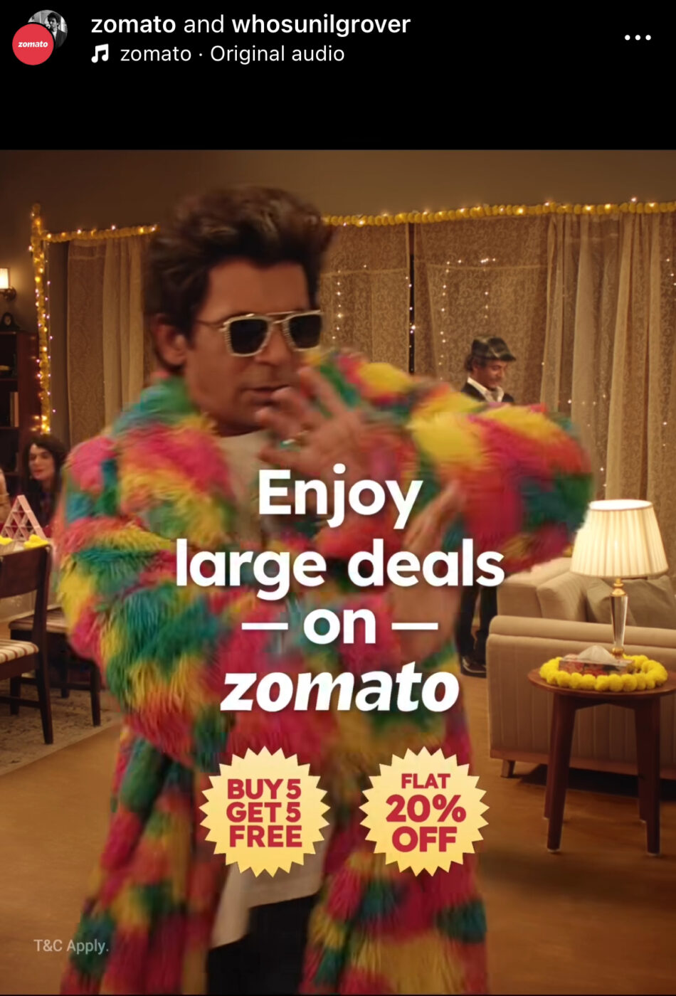 Brands like Zomato have built their social presence around Reels. Their #EnjoyLargeMealsOnZomato campaign used influencers to showcase food delivery in relatable, entertaining formats that combined humor with emotional storytelling.