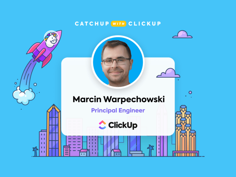 Prior to joining ClickUp, I was the founder of a software company, so I had the engineering experience and experience running a team, shipping, and building a project, but on a small scale. What brought me to be an individual contributor at ClickUp was my curiosity about working at a scaling company.