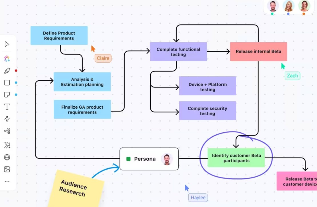 Drag your scrappy ideas onto ClickUp Whiteboards to cluster the smallest self-contained slice that still delivers a full outcome. Convert the chosen cards into ClickUp Tasks with Custom Fields for impact, effort, and confidence so tradeoffs are clear.
