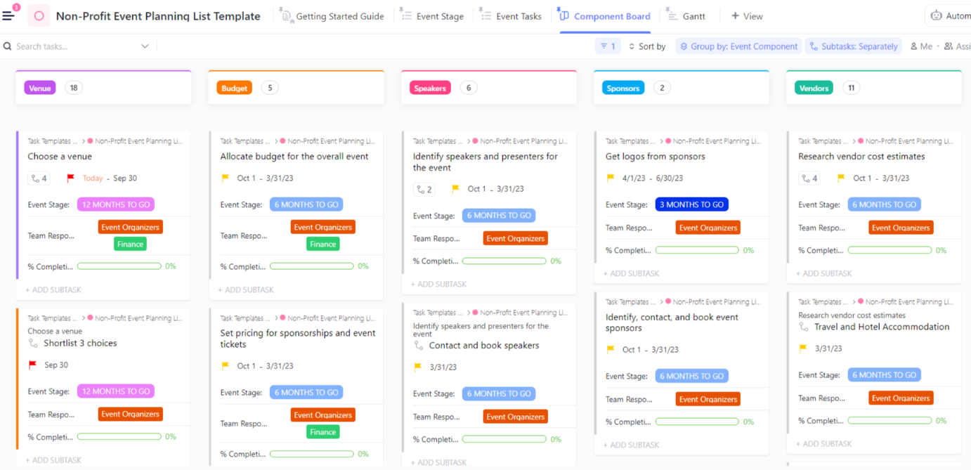 Pulling off a successful nonprofit event takes more than enthusiasm—it takes serious coordination. ClickUp’s Non-Profit Event Planning Template is here to help. This comprehensive tool guides you through every aspect of event planning, from setting goals to post-event wrap-up.