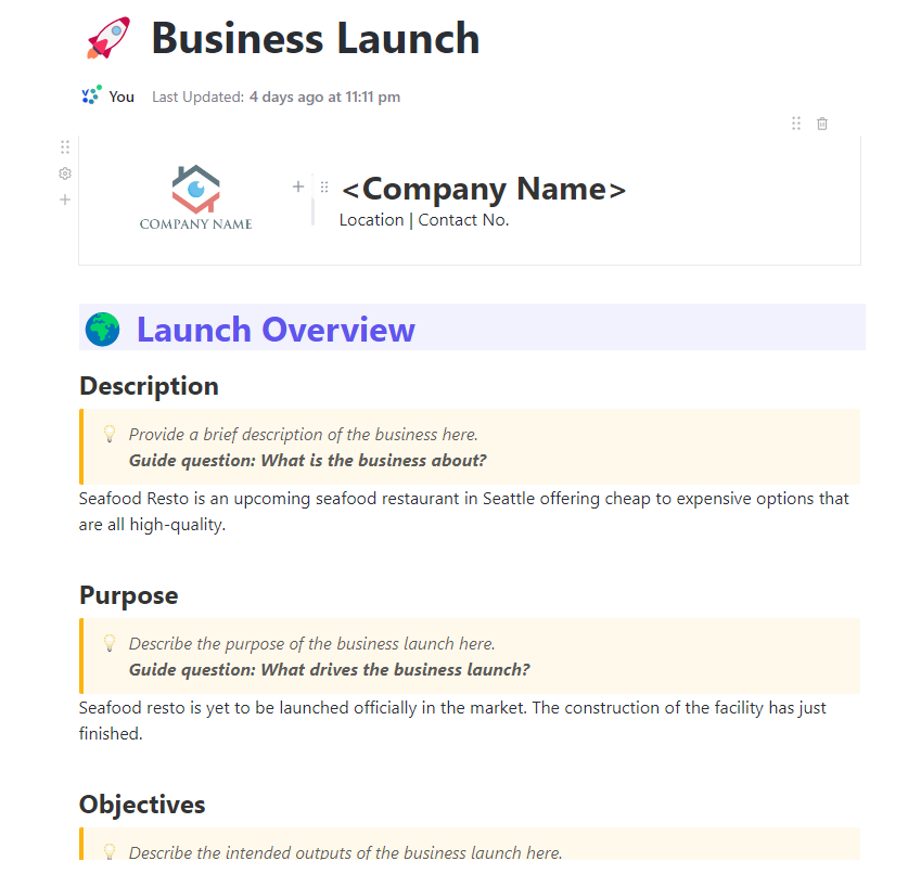 Feeling overwhelmed by the innumerable tasks involved in launching your business? ClickUp’s Business Launch Template is the perfect solution! It provides a clear roadmap from initial planning to final execution.