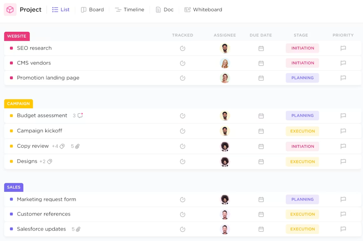 Multiple views, Custom Fields, and statuses ensure everyone works towards the same goals.