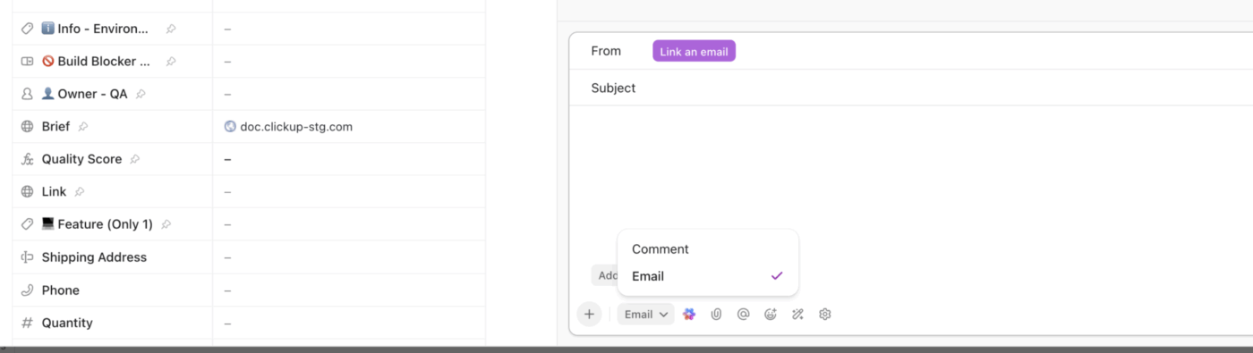 Instead of treating email as a separate app, the tool brings it into the center of your workflow. You can send and receive emails directly inside tasks, link email threads to relevant work, and even assign follow-ups without leaving your workspace.