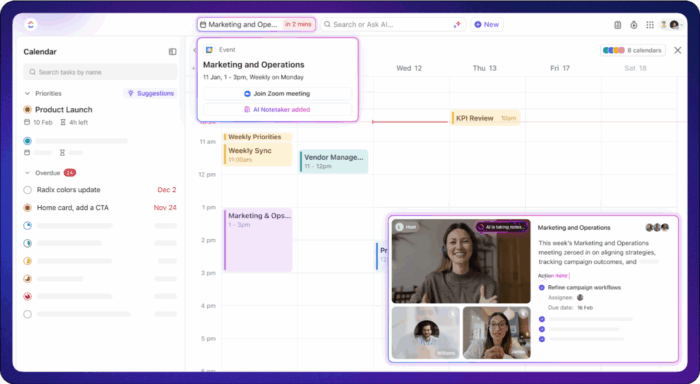 It starts with time visibility. With ClickUp Calendar, teams can plan work against real schedules, not just due dates, so handoffs are easier to coordinate across time zones and priorities stay visible day-to-day.