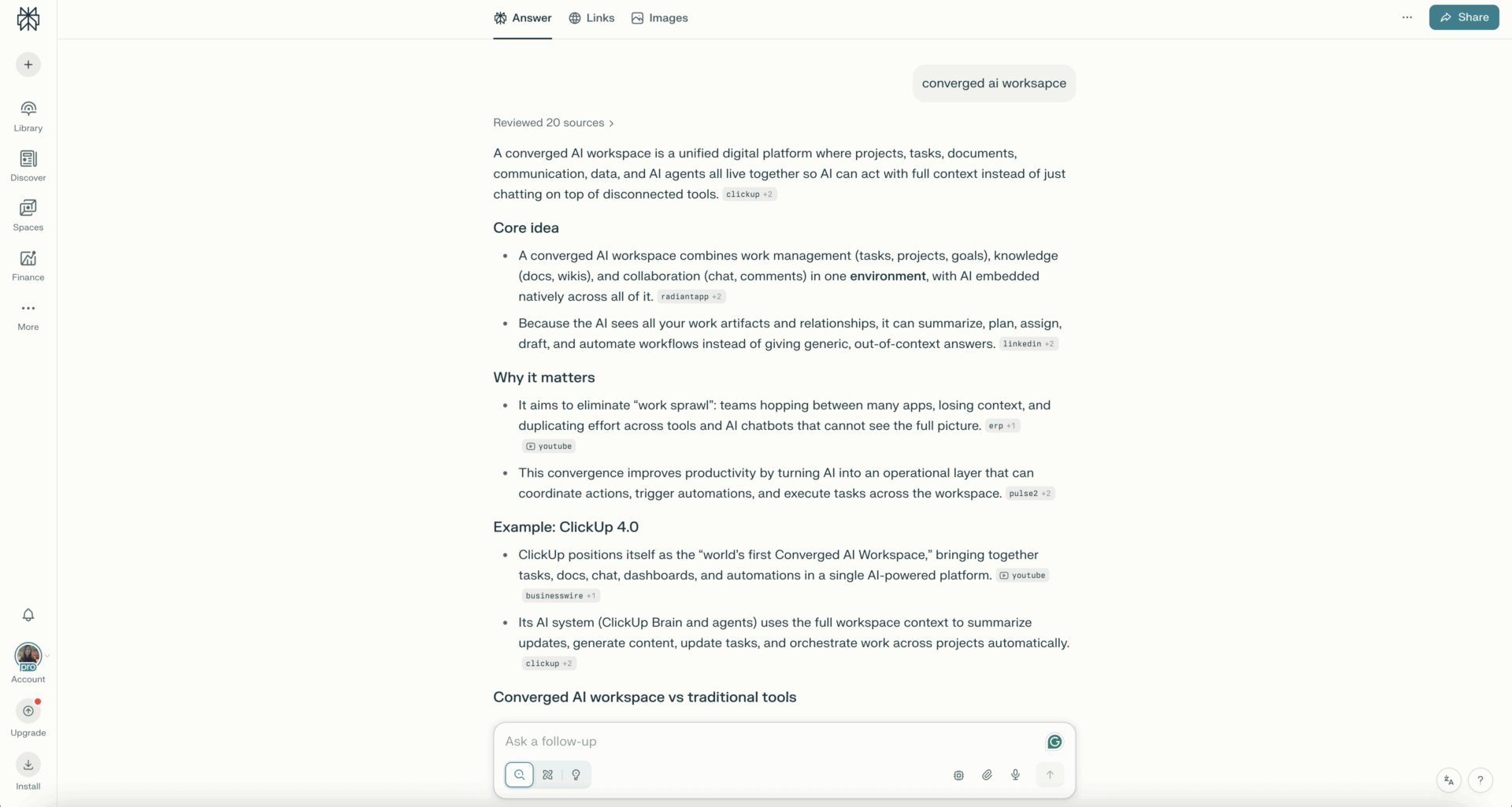 If your day includes a lot of “Can you source this?” requests, Perplexity AI can help you turn quick questions into usable notes you can share with your team.