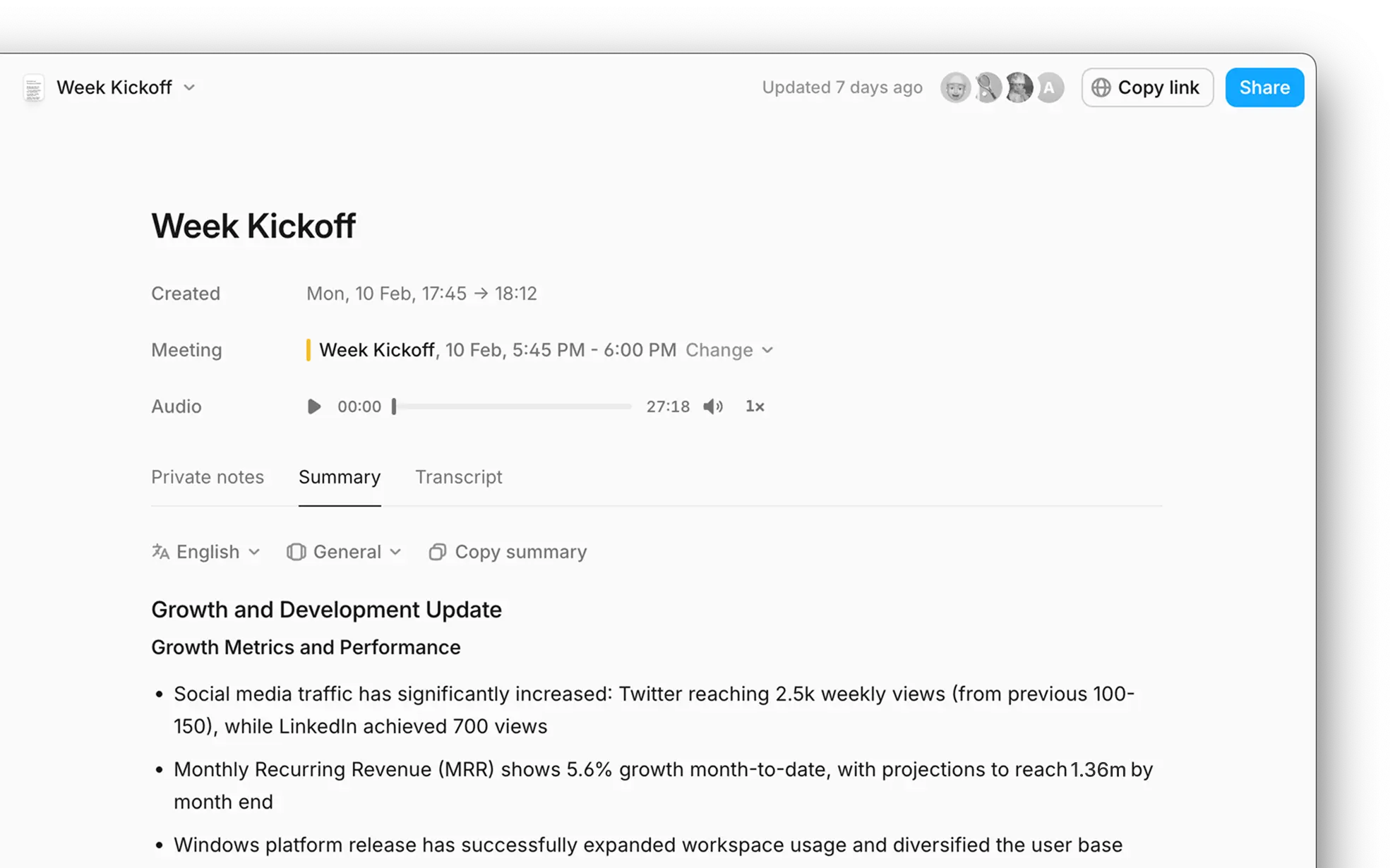 Amie’s time management is also supported by integrated tools like a Pomodoro timer and AI-assisted meeting note-taking, which immediately converts discussion points into scheduled to-dos