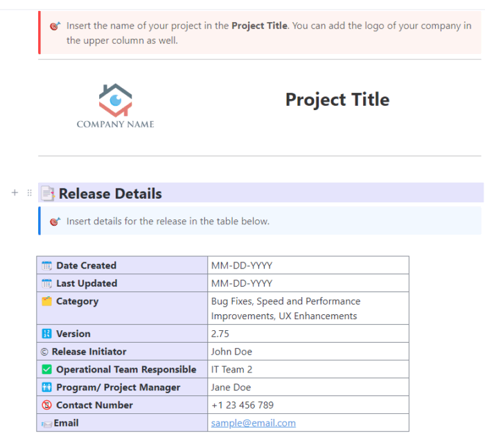 If you want a more structured starting point, ClickUp’s Release Management Template is worth a look. It comes pre-built with the fields and structure that most homegrown trackers take weeks to develop organically.