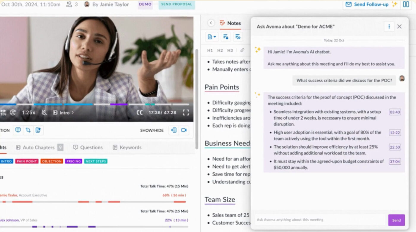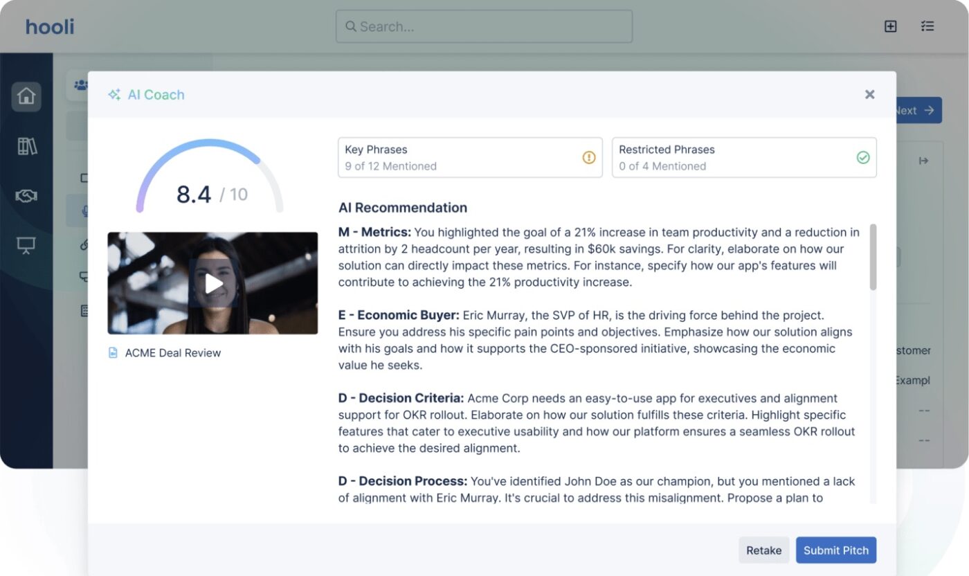The platform also spots talk patterns, flags deal risks, and keeps sales reps on track with winning playbooks. Sales managers gain visibility, reps get actionable feedback, and businesses take a data-driven approach to performance improvement.
