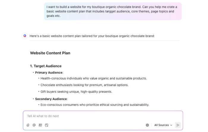 Even better, you can use Brain to repurpose a blog intro into a social media caption, rewrite dense product copy into a more engaging copy, or tweak the tone of your website copy for different audience personas—everything within ClickUp (can you imagine!?).