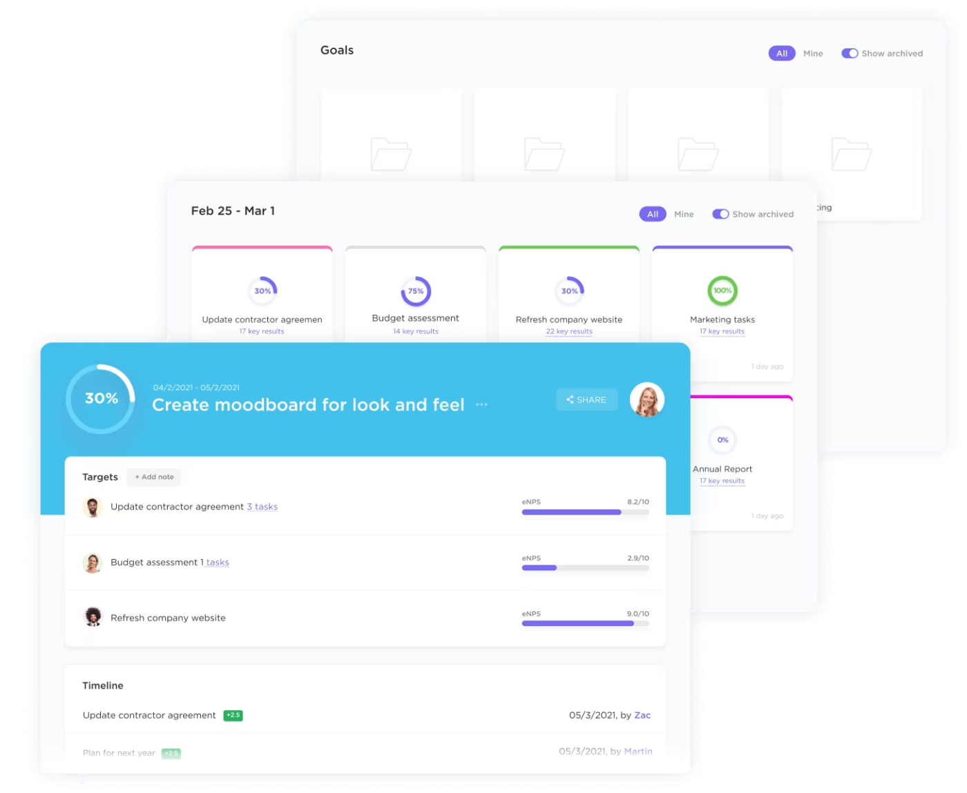 There are many moving parts in a website content plan—SEO, lead generation, engagement, and conversions. ClickUp Goals helps you define clear outcomes and tie them to your content strategy and its success (or failure).