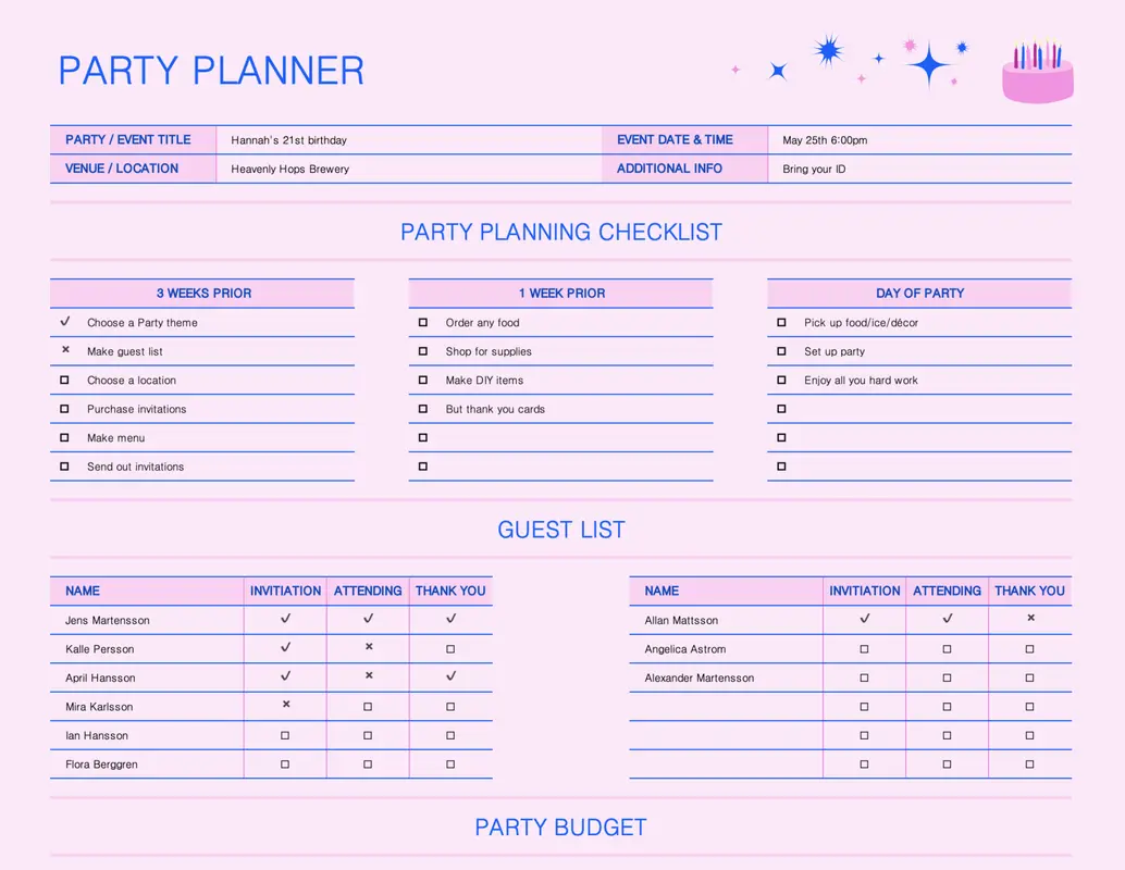 Key features of this party-planning template include: