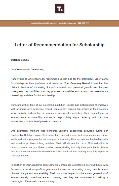 3. Letter of Recommendation for Scholarship Template by Template.net