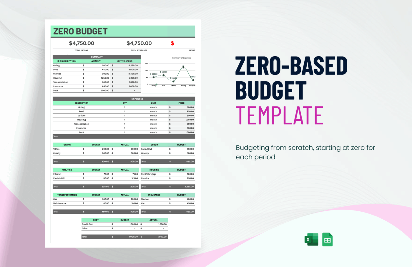 | Zero-based Budget Template by Template.net | Download template | Users who want a clean, traditional spreadsheet-style budget in multiple formats | Available in Excel, Google Sheets, and PDF formats; professional layout for personal or small business use; customizable categories/fields; manual updates required and may require an account to download |