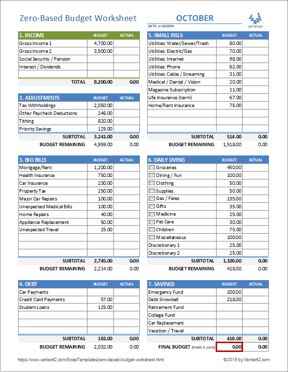 For those who love the familiar environment of a spreadsheet, Vertex42’s Zero-Based Budget Worksheet is a good option. It’s specifically designed for zero-based budgeting and works in both Excel and Google Sheets.