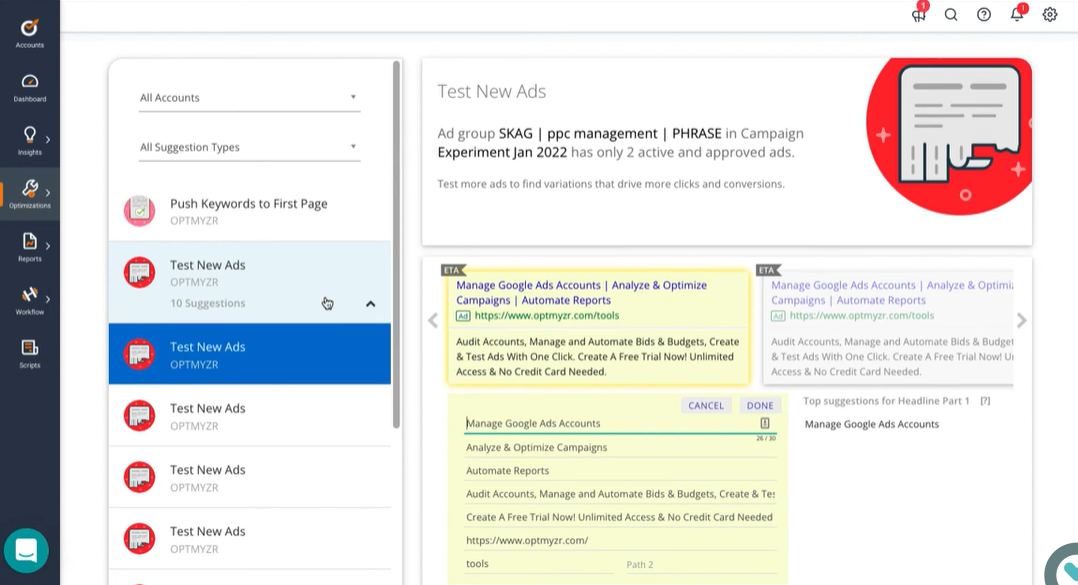 19. Optmyzr (am besten für die Optimierung von PPC-Kampagnen geeignet)