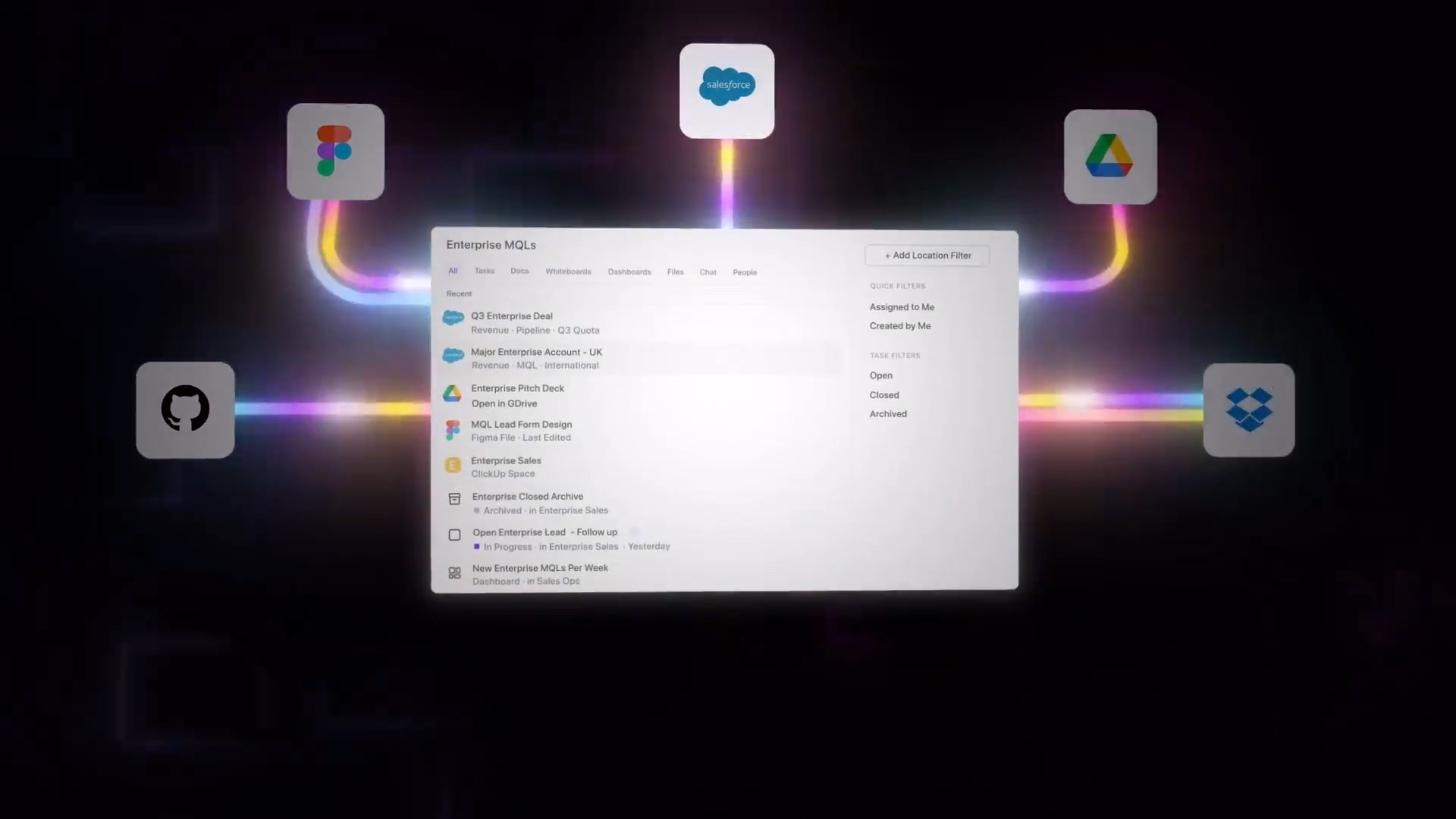 From Drive and Notion to Slack and Gmail - every app, connected and searchable from one place.