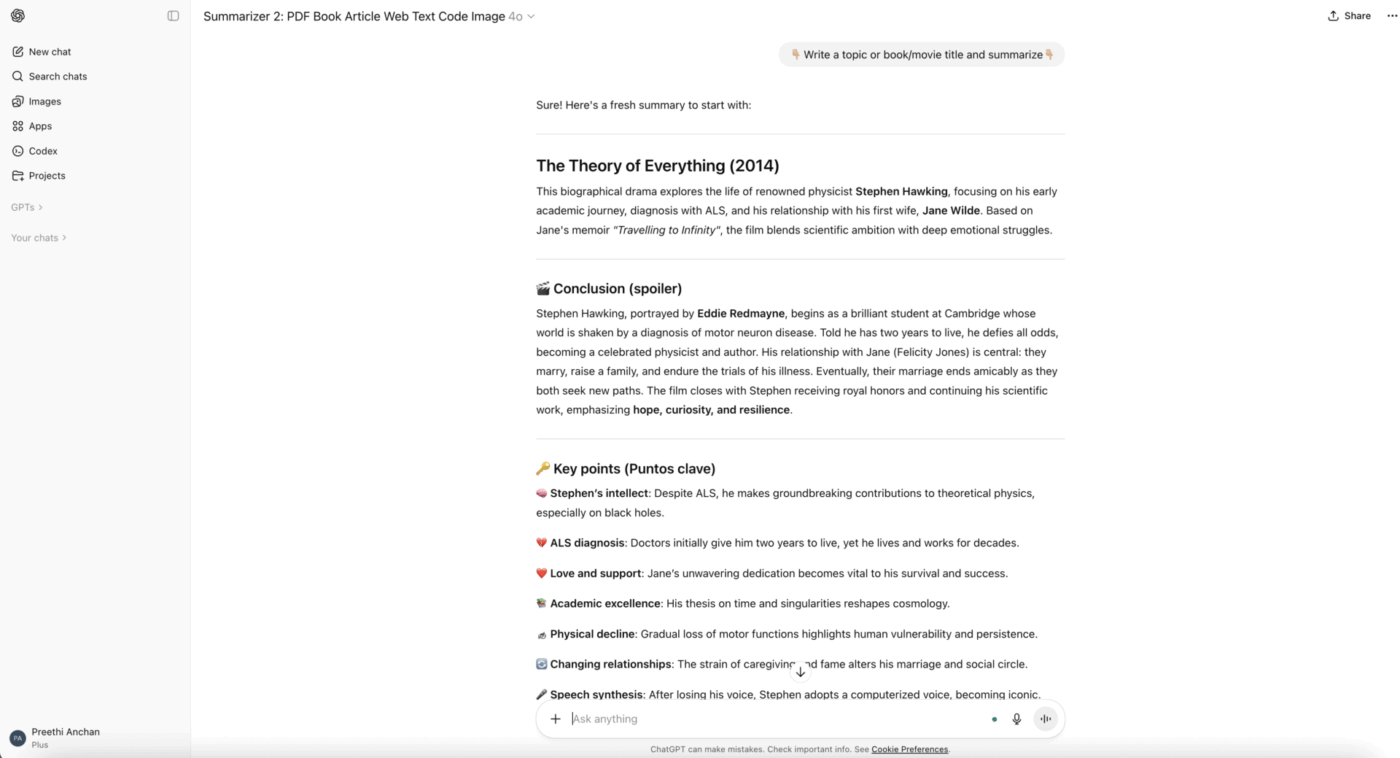 Ciò che apprezzo di più di ChatGPT è la sua capacità di comprendere il contesto e fornire soluzioni immediate. Mi aiuta a redigere email professionali, a perfezionare la mia grammatica e a trovare rapidamente idee per il contenuto. Mi affido a esso anche per risolvere formule Excel complesse, il che riduce significativamente il tempo che dedico alle attività quotidiane. Inoltre, l'interfaccia è estremamente intuitiva e facile da usare.