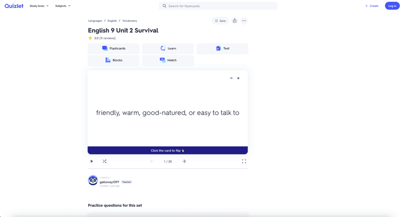 7. Quizlet (ideale per l'apprendimento basato su flashcard)