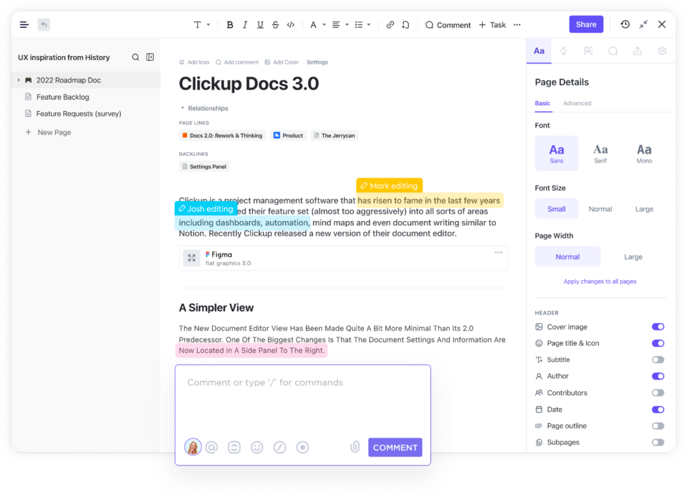 これらは基本的な機能のみです。ClickUp ドキュメントはさらに多くの機能を備えています。