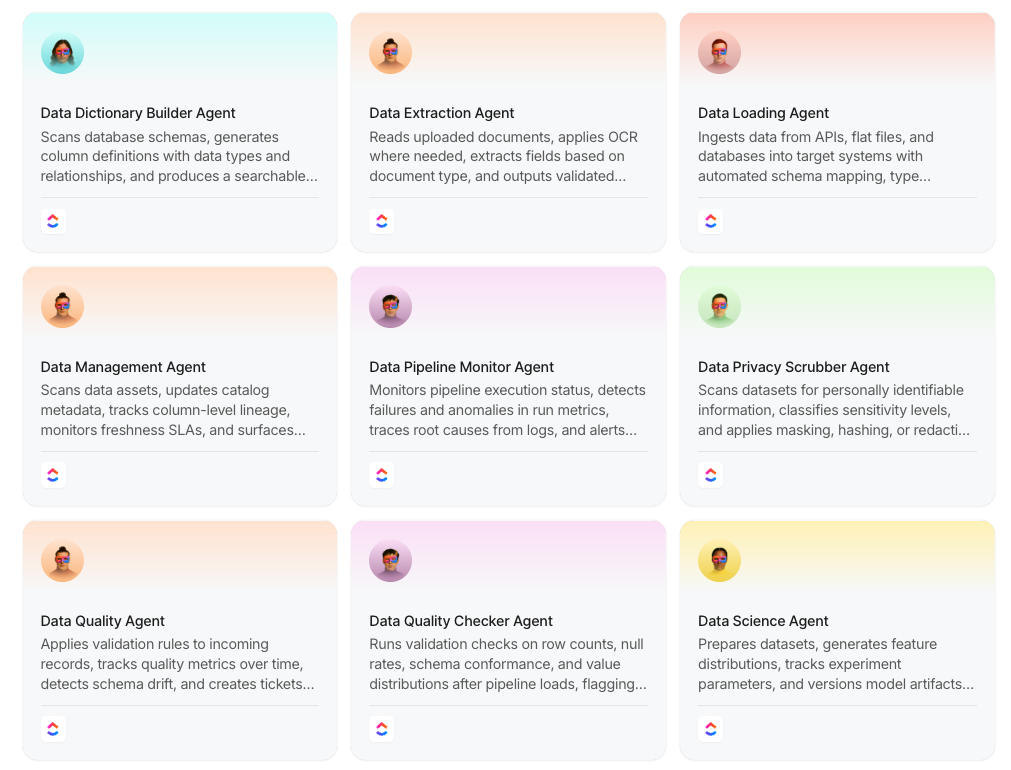각 템플릿은 ClickUp 내에서 제작되었으며, 작업 관리, 자동화 기능, 실시간 컨텍스트를 제공하는 ClickUp Brain과 직접 연결됩니다. 👀
